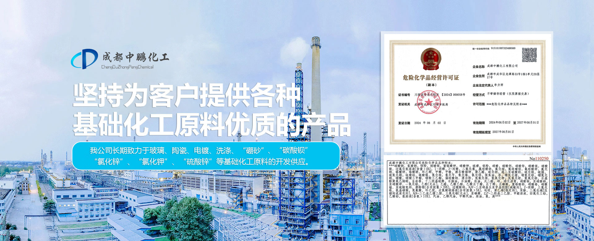 成都中鵬化工有限公司成立于2001年,位于成都市新都區(qū)木蘭木名商塑化城2棟11號(hào),公司成立16年以來(lái),一直堅(jiān)持為客戶(hù)提供各種基礎(chǔ)化工原料的產(chǎn)品。我公司長(zhǎng)期對(duì)于玻璃、陶瓷、電鍍、洗滌、“硼砂”、“碳酸鋇”、“氯化鋅”、“氯化鉀”、“硫酸鋅”等基礎(chǔ)化工原料的開(kāi)發(fā)供應(yīng)。 公司現(xiàn)在員工上百人,在全國(guó)擁有多個(gè)營(yíng)銷(xiāo)體系和完善的售后服務(wù)體系,長(zhǎng)期以來(lái),通過(guò)為客戶(hù)提供各種基礎(chǔ)化工原料的產(chǎn)品,形成了良好的合作關(guān)系...